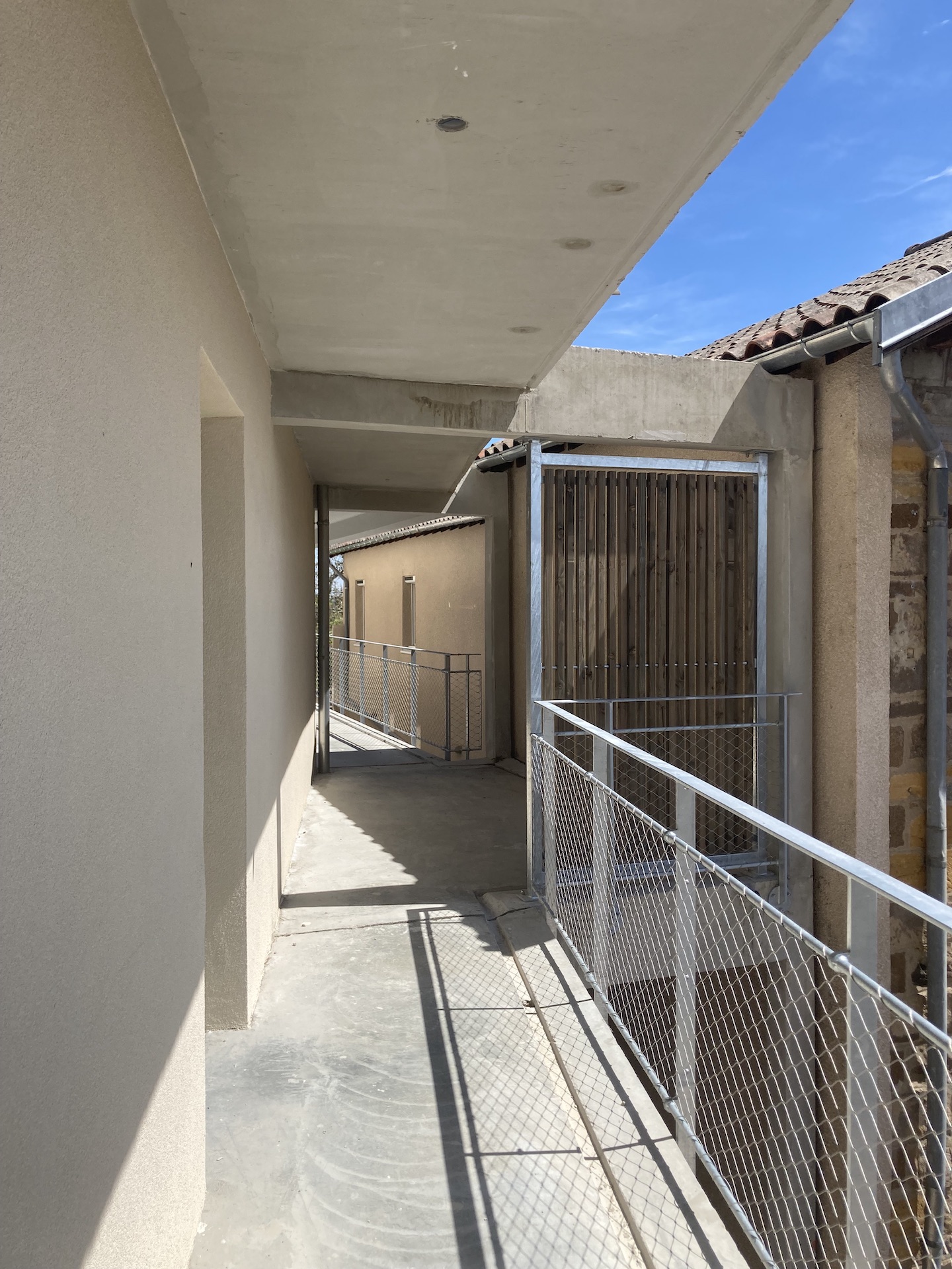 Construction de 14 logements collectifs répartis en deux blocs communiquant via des passerelles et 2 locaux à aménager au tre-de-chaussée. Aménagements paysagers et parking en surface.